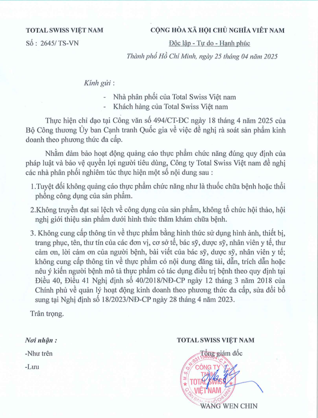 - THÔNG BÁO CTY KHÔNG QUẢN LÝ TRANG FACEBOOK FIT SOLUTION-TOTAL SWISS VIỆT NAM